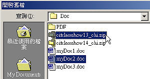(b) 如果你要選擇的檔案不是並排,可以先點選第一個檔案,然後按 Ctrl 鍵不放,再點選每一個檔案。